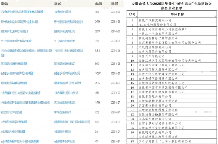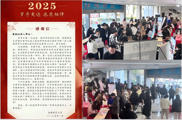 本网讯 寒假期间,安徽建筑大学全面贯彻党中央、国务院关于高校毕业生就业创业工作的决策部署,落实《教育部办公厅关于开展2025届高校毕业生“寒假促就业暖心行动”的通知》(教就业厅函〔2025〕2号)精神,持续推进毕业生就业相关工作,助力2025届毕业生高质量充分就业。