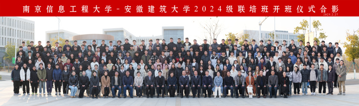 本网讯 2月27日下午,安徽建筑大学—南京信息工程大学2024级本科生联培班开班仪式在滁州天长金牛湖产教融合园区千秋会堂举行。校党委常委、副校长李早,南京信息工程大学党委常委、总会计师胡明保出席仪式,并为2024级联培班授旗。学校长三角区域高等教育一体化示范区共建办公室、学生工作部、研究生工作部、教务处、电子与信息工程学院、机械与电气工程学院负责人及工作人员,南京信息工程大学相关职能部门负责人、金牛湖园区管委会有关负责人、教师代表,以及2024级联培班199名学生参加开班仪式。