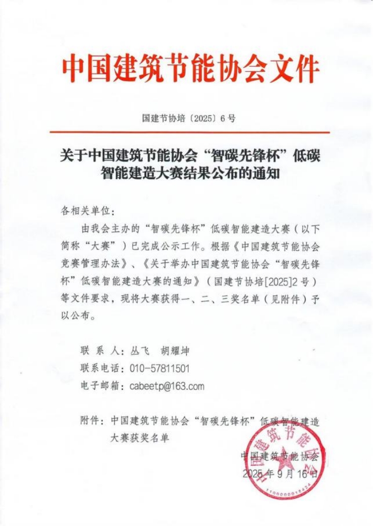 本网讯 近日,由中国建筑节能协会主办的首届“智碳先锋杯”低碳智能建造大赛获奖名单正式公布,环境与能源工程学院师生自主申报的两项科研实践类(高校组)项目荣获大赛二等奖和三等奖各一项,为安徽省唯一获奖的高校组参赛团队。