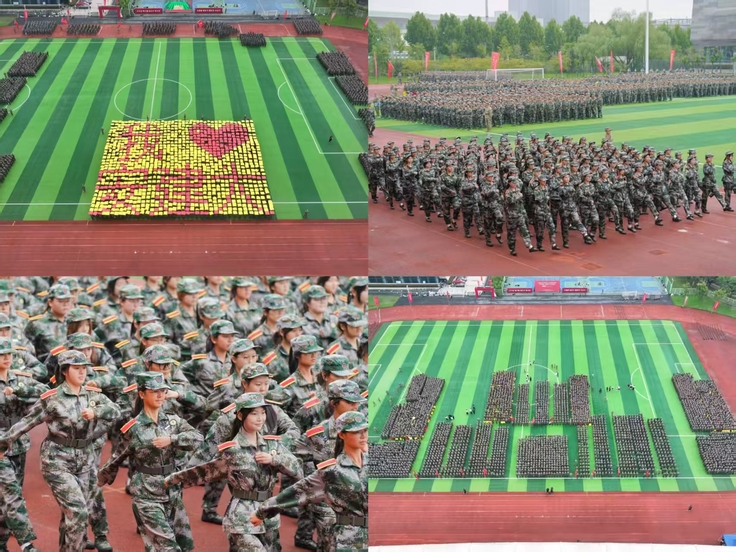 蔡国军一声令下,军训成果展示正式拉开帷幕。首先亮相的是拼字方阵,学员们以精准的跑位、默契的配合,诠释了对祖国的赤诚热爱和对学校精神的领悟;行进间队列方阵表演中,同学们步伐铿锵有力,动作整齐划一,彰显出严格的纪律性和高度的协同精神;战术方阵的演示将现场气氛推向高潮,学员们模拟战场环境,灵活施展战术动作,彰显了过硬的军事素养;刺杀操方阵的同学们口号如雷,突刺凌厉迅猛,动作刚劲有力,尽显一往无前的战斗作风;匕首操方阵的女同学们手持训练匕首,动作干净利落,喊杀声清脆响亮,巾帼不让须眉的英姿成为操场上一道亮丽的风景;格斗术方阵的学员们身手敏捷,展现了扎实的防身自卫能力和勇毅顽强的意志。最后,全体参训学员以一场气势磅礴的大合唱为成果展示画上圆满句号。