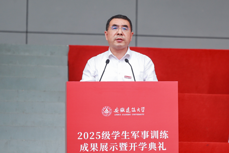 本网讯 金秋送爽,景气和畅。9月26日,安徽建筑大学2025级学生军事训练成果展示暨开学典礼在紫云路校区田径场隆重举行。校党委副书记、校长蔡国军出席,与5800余名2025级新生一起见证这难忘时刻。校领导李早、黄多能、高跃峰等参加,承训部队负责人、学校职能部门主要负责人、各二级学院负责人及教师代表、老生代表和全体新生参加活动。活动由校党委常委、副校长李早主持。