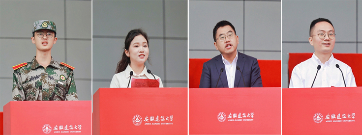 教师代表、建筑与规划学院副院长聂玮用“启航”“回归”“传承”三个关键词回顾了自己和安建大的20年,希望大家立“科技强国”之志,做智慧建设的先锋;承“徽匠精神”之魂,做文化传承的使者;践“人民城市”之行,做担当奉献的栋梁,以青春之我、奋斗之我,为强国建设、民族复兴贡献力量。