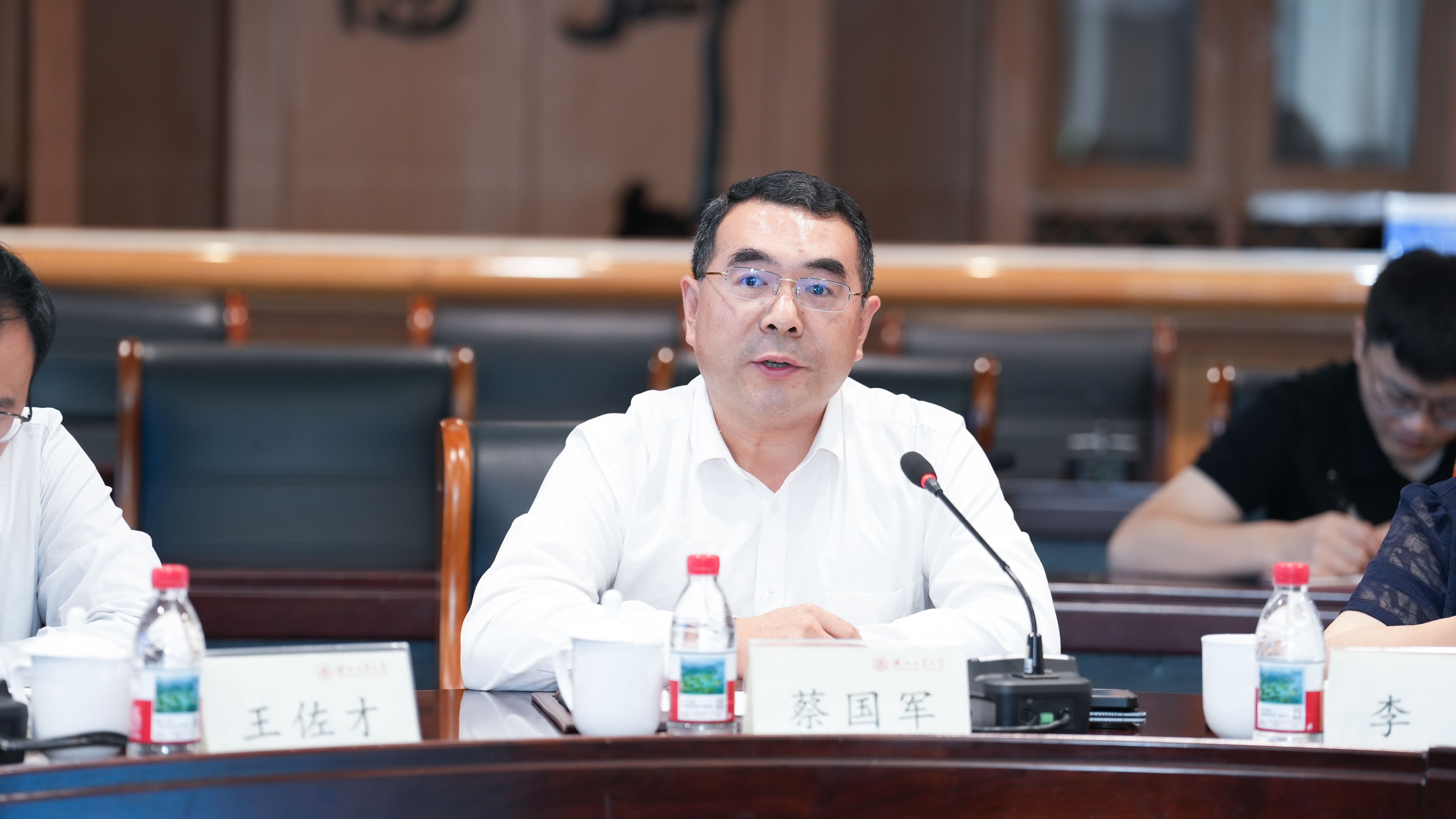 蔡国军对浙江工业大学的热情接待表示感谢,并介绍了安徽建筑大学的办学历史和发展成果等方面情况。他指出,学校近年来坚持质量立校,坚持走打好“建”字牌,做好“徽”文章的特色发展之路,不断深化教育教学改革,在师资力量、教学质量、办学条件和社会影响力方面均得到较大提升,双方合作空间广阔、前景可期。他表示,浙江工业大学作为东部沿海地区第一所省部共建高校,近年来以一流眼光、一流理念、一流举措,推动学校实现整体性跃升和高质量发展,在科学研究、学科建设、人才培养等方面取得了丰硕成果。未来,学校发展要继续借风行船,全方位向浙江工业大学学习,坚决贯彻习近平总书记关于长三角一体化和考察安徽重要讲话精神,真诚期待与浙江工业大学持续深化合作、巩固拓展交流,积极抢抓长三角区域一体化建设战略机遇,建成皖浙两省高等教育一体化示范样板,共同打造长三角地区高校合作新品牌、新典范、新标杆。