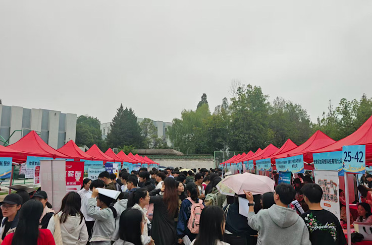 本网讯 近日,我校2026届毕业生(经济类、管理类专场)秋季就业市场在金寨路校区篮球场成功举办。尽管天公不作美,下着淅淅沥沥的小雨,但现场依旧人气爆棚、氛围火热,求职学子与参会企业的热情丝毫未减。