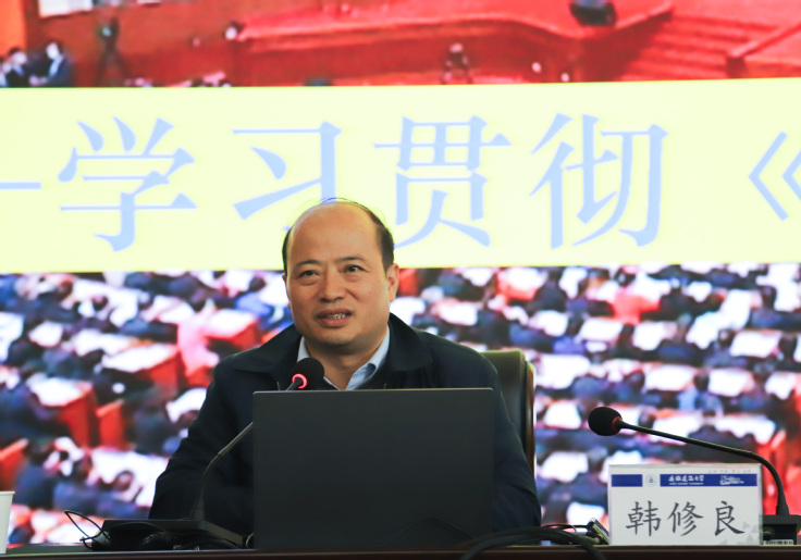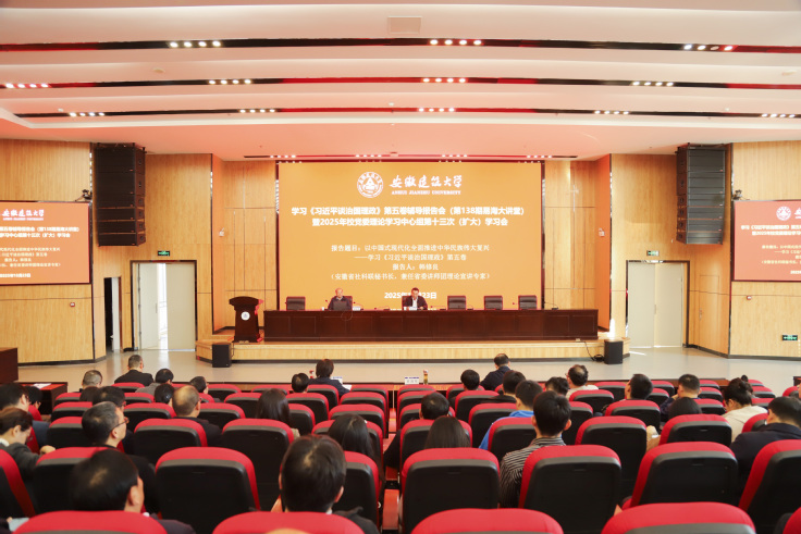 韩修良以“学深悟透《习近平谈治国理政》第五卷以中国式现代化推进中华民族伟大复兴”为主题,结合安徽省和高校发展实际,从拓展天下胸怀、紧扣中心任务、把握根本遵循、汇聚奋进力量四个方面,对《习近平谈治国理政》第五卷进行了系统阐述和深刻讲解,重点阐发了该著作所提出的新思想新观点新论断,他指出,《习近平谈治国理政》第五卷与前四卷一脉相承又与时俱进,面对纷繁复杂的国际形势及新一轮科技革命和产业变革,要以学习贯彻《习近平谈治国理政》第五卷为契机,学深悟透习近平新时代中国特色社会主义思想,增强学思想、悟思想、用思想的自觉性和坚定性,持续推进实践基础上的理论创新,汇聚起奋进新征程、建功新时代的强大力量。