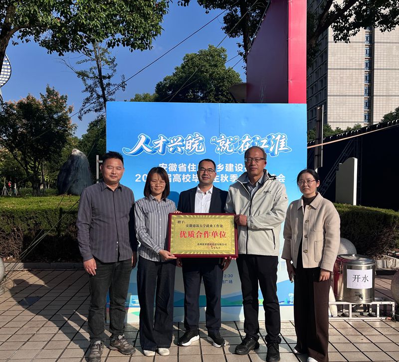 学校党委常委、副校长杨科代表学校接受牌匾并致谢。他指出,“优质合作单位”称号既是对学校就业工作的肯定,更是对人才培养质量的认可。安徽建筑大学始终聚焦住建行业发展需求,通过深化教育链、人才链与产业链的融合,为行业输送了大批高素质人才。