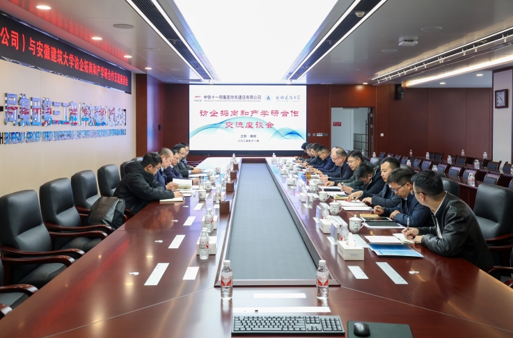 本网讯 为深入贯彻落实党中央、国务院关于高校毕业生就业工作的决策部署,全力促进学校毕业生高质量充分就业,精准对接产业发展需求。11月18日,校党委常委、副校长王佐才带队赴中铁十一局集团第三工程(华东建设)有限公司开展访企拓岗暨产学研合作交流活动。环能学院党委书记戴前宏、院长谢发之及相关专业系教师参加,座谈会由中铁十一局三公司(华东公司)党委副书记、工会主席杨金川主持。
