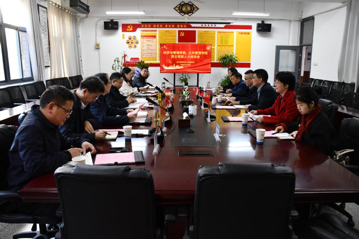 本网讯 为学习贯彻习近平总书记关于做好新时代党的统一战线工作的重要思想,落实中共中央关于统一战线工作的重大决策部署,充分发挥民主党派在学校发展和学院治理中的积极作用。11月19日,金寨路校区经济与管理学院、公共管理学院在建树楼209会议室组织召开民主党派人士座谈会。校党委常委、副校长高跃峰出席会议并讲话。校党委统战部常务副部长陈剑锐、学院相关负责人和民主党派代表参加会议。经济与管理学院党委书记潘和平主持会议。