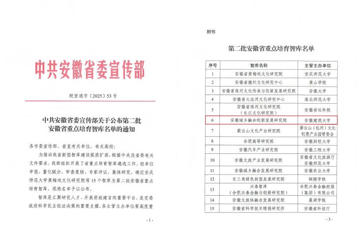 在省委宣传部公布的2025年第二批安徽省重点培育智库名单中,学校“安徽城乡融合创新发展研究院”成功入选,这标志着学校重点智库建设实现从“0”到“1”的重大突破。该智库聚焦城乡融合创新发展等重大课题,构建“理论研究-政策咨询-实践转化”全链条研究体系。未来,学校将着力强化智库体系建设,汇聚高端人才力量,深度推进政产学研金服用融合,为行业升级与区域发展提供关键智力支撑。