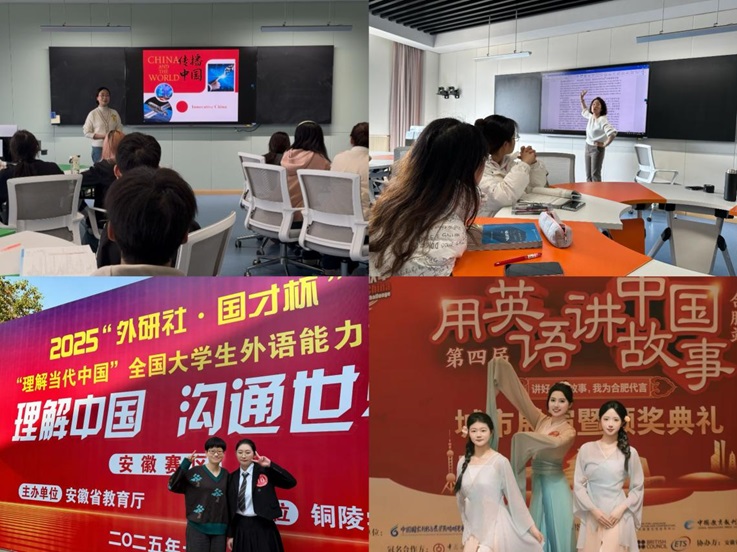 通过党建引领下思政与教学、竞赛的融合,优化培养方案对接行业需求与学生成长诉求,AI辅助英语教学,以及搭建跨学科考研全方位支持体系等举措,外国语学院英语专业跨学科考研录取率稳步提升,学生在“外研社・国才杯”“理解当代中国”全国大学生外语能力大赛、安徽省跨文化能力大赛等赛事中斩获国家级、省级奖项,英语专业学生的自主学习能力、表达能力及思辨能力明显增强,教师的教学针对性与思政融入能力也同步提高,教风和学风形成双向赋能的良性循环。这些实践既契合外语专业培养兼具家国情怀与国际视野人才的需求,也为同类高校英语专业破解思政元素与专业内容脱节、教学内容和行业需求错位等问题提供了可参考的经验,同时还为公共英语课教学改革、文科产教融合提供可行路径。