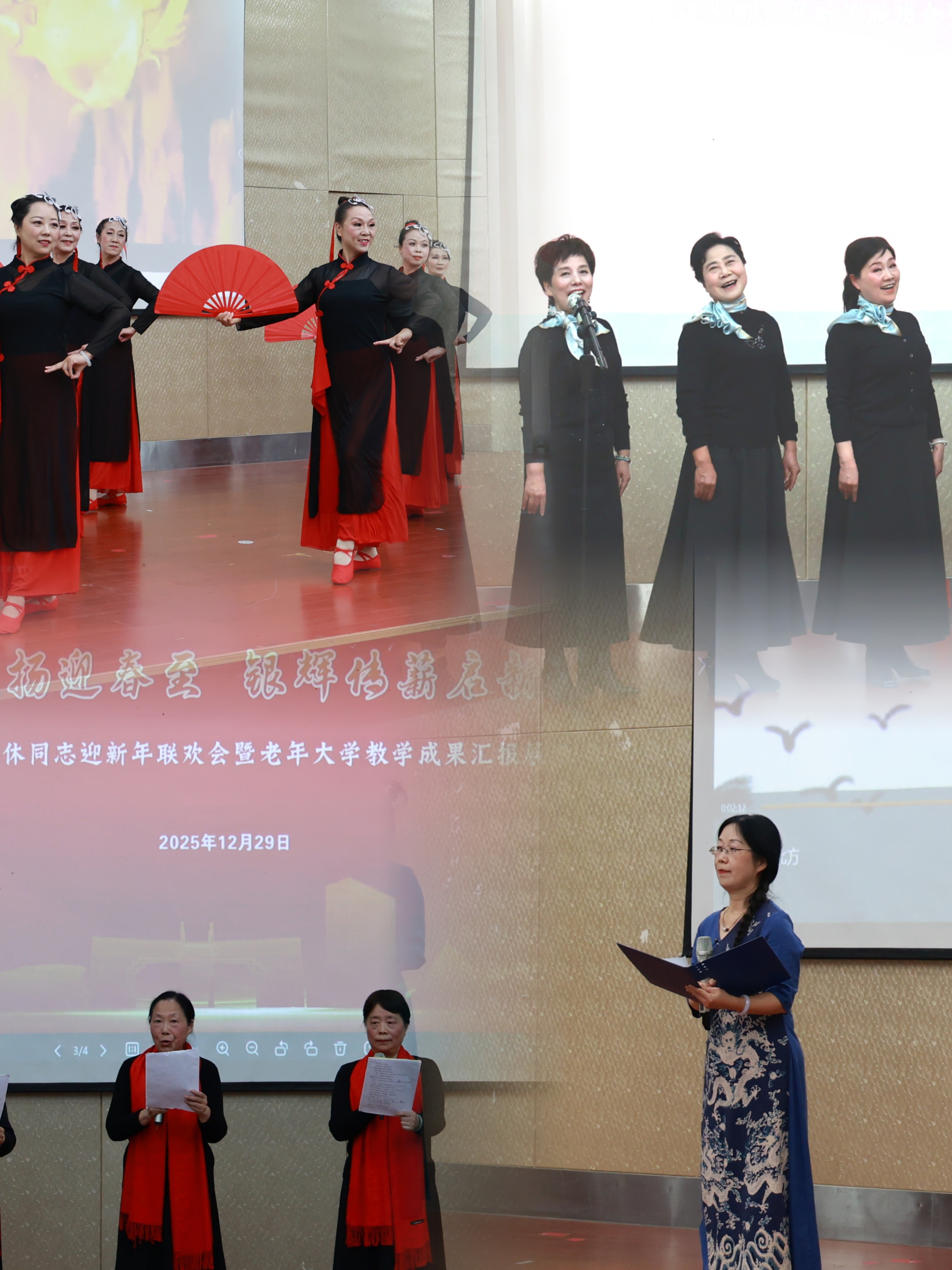 举办校情通报会与新年联欢会,是学校弘扬尊老敬老优良传统、丰富离退休同志精神文化生活的重要举措。本次活动聚焦“汇报”与“欢庆”两大主题:校情通报会向老同志汇报“家事”,共享学校发展喜悦;联欢会则集中呈现老年大学绚丽多彩的教学成果。活动最终在和谐、温暖、喜庆的氛围中圆满落幕。老同志们携手迎接充满希望的新年,共同祝愿国家繁荣昌盛、学校明天更美好。(文/图:赵巧云 李欣 ;一审:吉晓婷;二审:赵巧云;三审:汪涛)
