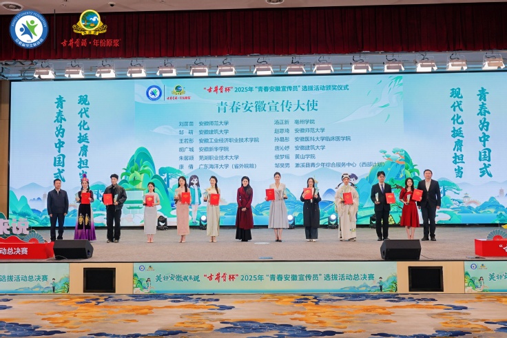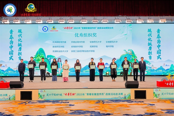 本网讯 12月28日至29日,由共青团安徽省委、安徽省学生联合会主办的“古井贡杯”2025年“青春安徽宣传员”选拔活动省级决赛,于亳州古井集团产业园圆满落下帷幕。安徽建筑大学公共管理学院学生邹萌、建筑与规划学院学生唐沁妤表现优异,成功跻身全省前十,双双获授“青春安徽宣传大使”称号。学校荣获“优秀组织奖”。