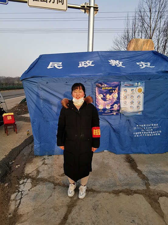 第一学生党支部党员仇善博从正月初二开始,每天早晨8点在村街头值班站岗,对过往车辆人员登记信息,测量体温,并向村民宣传防护知识,每天晚上都值班到十点,他说,战“疫”当头,虽心系武汉,但不能前往,唯尽绵薄之力,守护一方家乡。