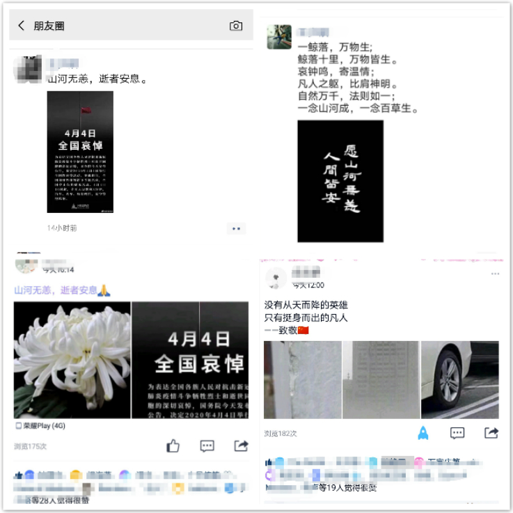 本网讯 恰逢清明,为悼念抗疫逝世英雄和同胞,勉励当代青年向英雄学习“舍小家为大家”的精神、勇于承担和践行社会责任,材化学院在引导安全文明祭扫的同时鼓励学子们用自己的方式表达对他们的哀思,他们有的在QQ空间为他们刷屏悼念,有的在朋友圈寄出自己哀思、有的采取“云祭扫”的方式、还有的则通过朗诵的方式进行。英雄——我们不会忘记,人民不会忘记!