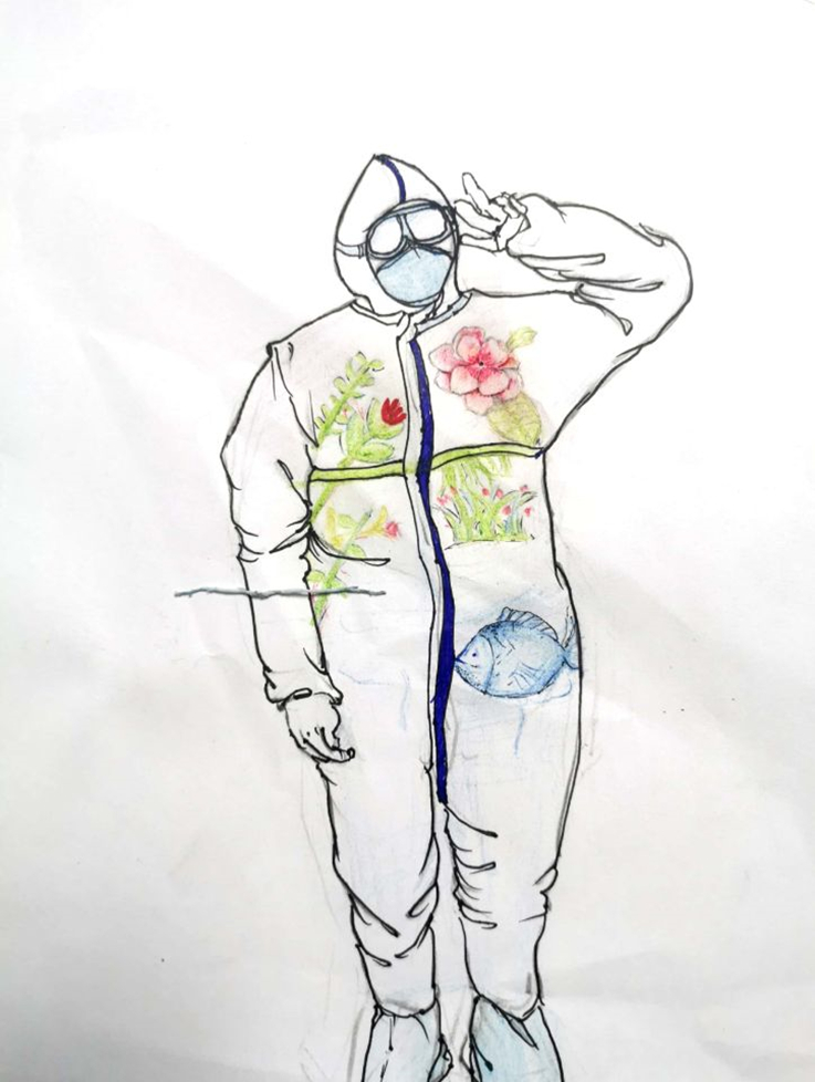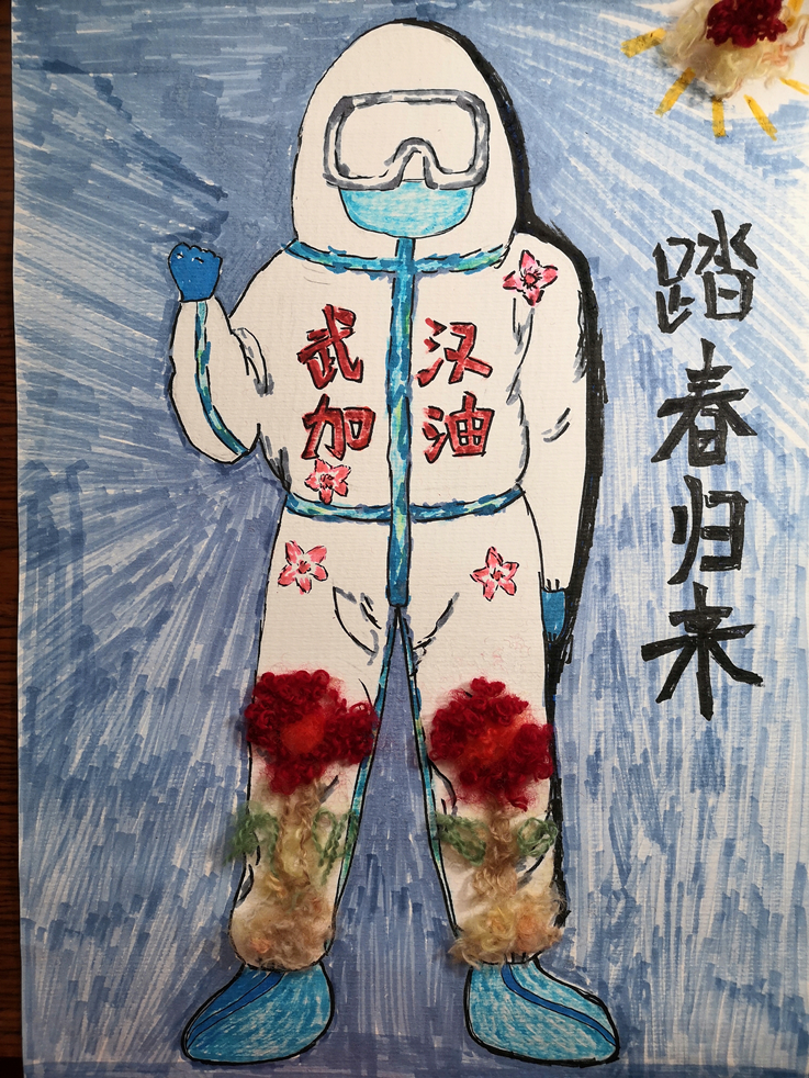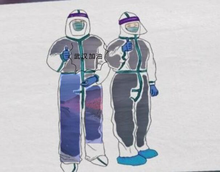 线上投稿持续了五天,同学们用自己的创意让原本单调无色的医护服装充满了色彩。“樱花红陌上 柳叶绿池边”,武汉的樱花映满了衣摆,领肩坠着几缕柳枝,通信工程1班赵泽宇借这春暖花开的景象勾勒战衣,迎接战士们的归来,那袖口的中国红,紧握的拳头,也表达着众志成城,同仇敌忾的决心。计算机科学与技术专业唐佶泽同学将黄河壶口之景融入到战衣之中;通信工程蒋文涤同学将花环围绕在医护人员周围。还有很多选手都在作品上写下了“中国加油”“武汉加油”的字样,努力传递一份温暖和力量。