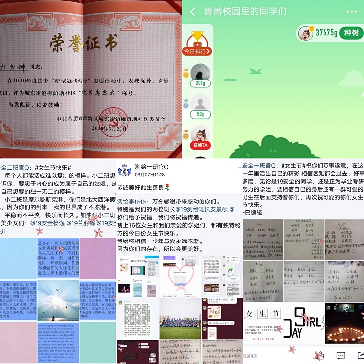 阳春三月,万象更新,疫情渐退。19安测学子与春风同行,学雷锋,关爱女生,“云”种树,汇聚爱的力量,憧憬着美好的希望。