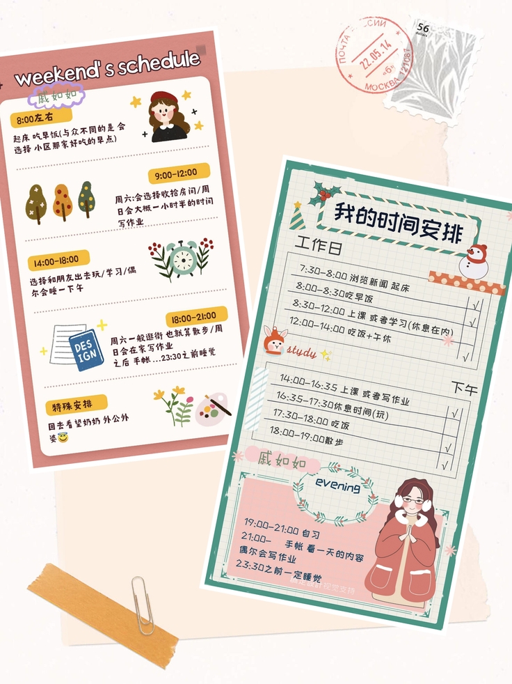 各班班会上,选取优秀计划表开展分享交流,并由学生代表就自己的计划表进行解读,供其他同学学习借鉴。原本枯燥规矩的计划表,在很多同学手中变了花样,不仅计划完整详尽,而且排版样式丰富多样。17级统计学1班何丽更是将计划表以漫画图的形式展现,让做计划也成了一件有趣的事。