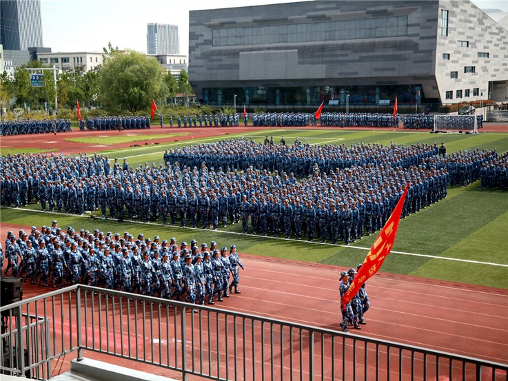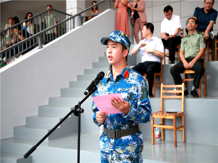 伴随着庄严雄壮的《义勇军进行曲》,军训成果展示暨开学典礼拉开序幕。