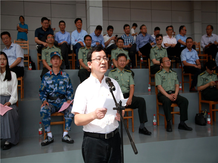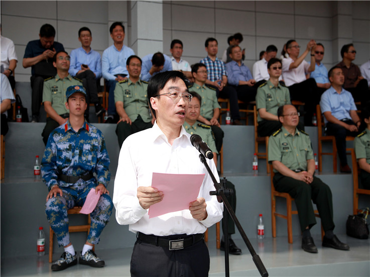 接着,校党委常委、副校长成祖德作《2020级学生军训结训报告》。他代表全体师生向所有的承训教官、指导员老师和工作人员们表示衷心的感谢,并从三个方面对此次军训工作进行总结:一是领导重视、周密部署;二是组织有序、紧张活泼;三是严格训练、成效显著。同时,成祖德希望同学们在今后的学习中刻苦钻研、精益求精,不断取得新的更大成绩。