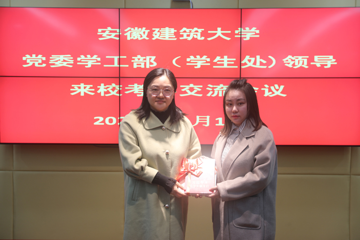 陈行表示,和安徽建筑大学联合培养专升本学生对于安徽职业技术学院的发展具有重要意义,通过两校联合培养,不仅能学习借鉴安徽建筑大学学生工作好的经验和做法,提升学校学生工作水平,也为安徽职业技术学院升本工作打下坚实基础;在日常管理上对标安徽建筑大学,既保证标准不降,要求不减,又要予以学生在学业和人文关怀上的充分保障,希望安徽建筑大学能给予更多的意见和建议,双方齐心协力,为学生的全面发展提供舞台和空间,共同致力于培养德智体美劳全面发展的社会主义建设者和接班人。
