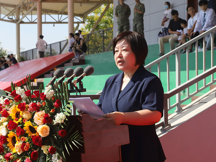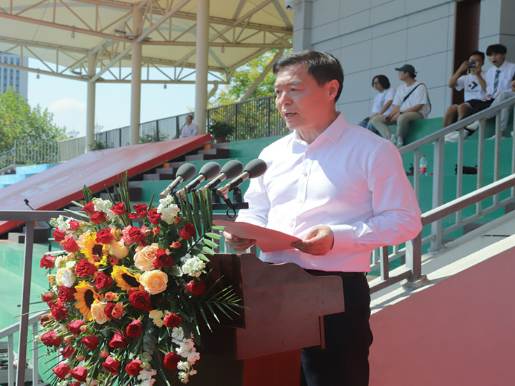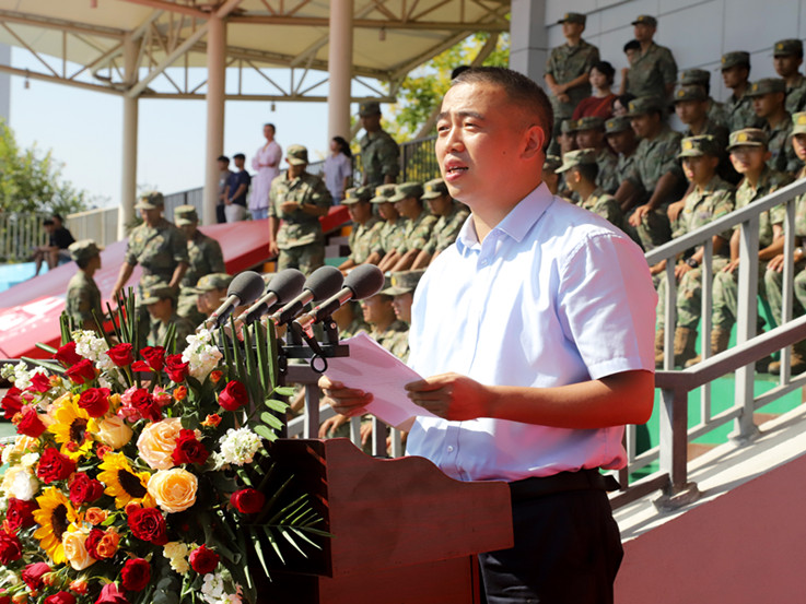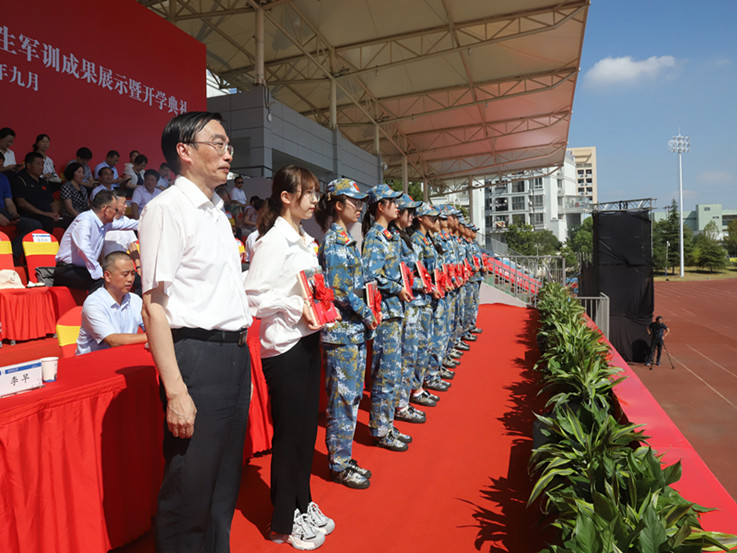朗朗金秋,朝阳初上,崭新的晨光,迎来了全新的开端。9月16日上午,学校2022级新生军训成果展示暨开学典礼在南校区田径场举行。校领导孙道胜、黄显怀、蔡新立、王玉兰、闵杰、蔡国军、李早、承训部队负责人出席典礼。学校职能部门主要负责人,各学院党委书记、院长、副书记、优秀校友代表、全体新生辅导员及2022级全体新生参加典礼。典礼由副校长蔡新立主持。