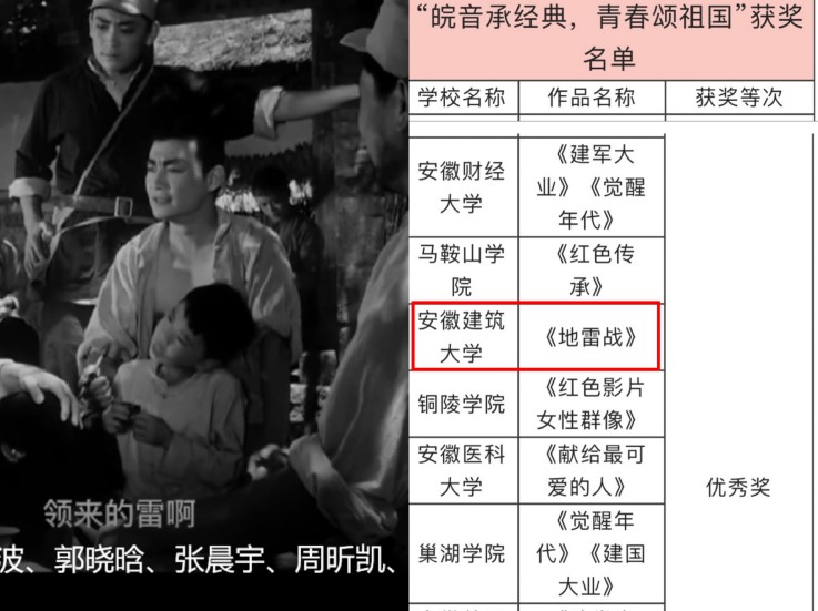 本网讯 近日,安徽省高校网络思想政治工作中心、安徽省易班发展中心公布了“皖音承经典,青春颂祖国”红色电影配音作品征集活动比赛结果,我校土木工程学院学生提交的作品《地雷战》获得“优秀奖”。