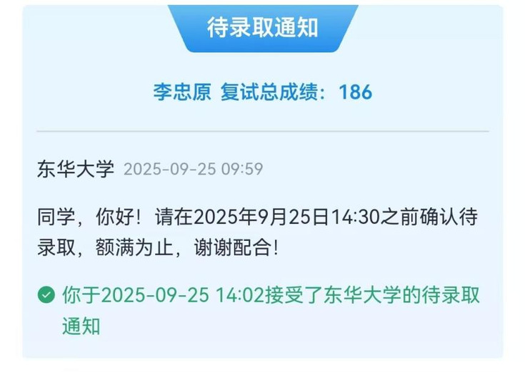 最后,李忠原想对学弟学妹们说:保研从来不是一蹴而就的奇迹,而是日复一日厚积薄发的必然。那些在图书馆里与星光为伴的深夜,那些在实验室中与仪器相守的晨昏,那些在竞赛场上与压力博弈的瞬间,终会化作束束光芒,照亮逐梦的征途。愿诸君以梦为马,不负韶华,找准方向便脚踏实地,锚定目标就全力以赴,以青春之我、奋斗之我,书写属于自己的璀璨华章!(文/图:李碧虹、李忠原;一审:何世明、方绍正;二审:帅英;三审:孙长城、徐庆和)