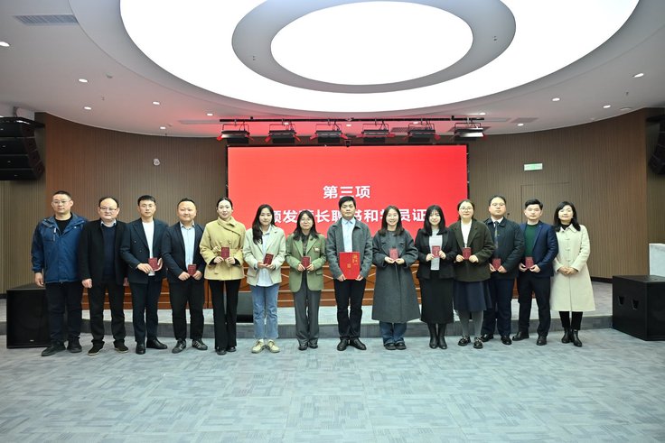 与会领导为环能学院专职辅导员徐明露颁发训练营营长聘书,并为第一期十名参训学员颁发了学员证。