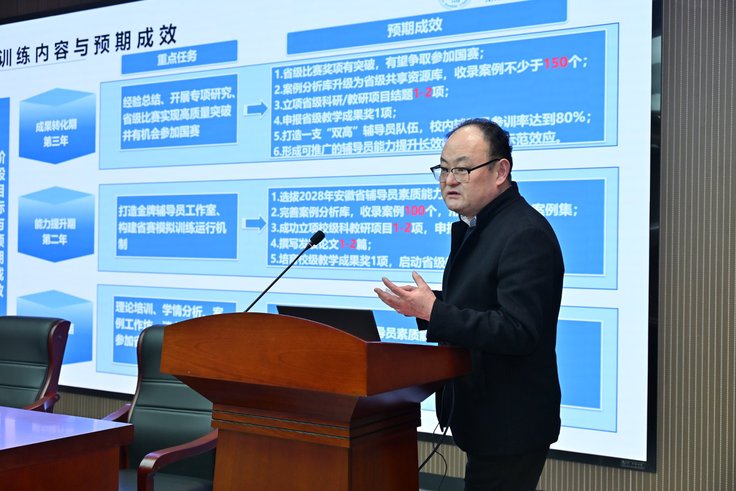 党委学工部负责人从总体目标、组织架构、训练模块、预期成效和保障措施五个方面就训练营方案进行了详细解读。他指出,举办辅导员素质能力提升训练营,对进一步激发辅导员队伍的内生动力,打造一支政治强、业务精、纪律严、作风硬的优秀辅导员队伍具有重要意义。他号召全体辅导员要“真学真信”,做到学以致用;要“实战实干”,凝练育人特色;要“自律自省”,发扬育人合力。