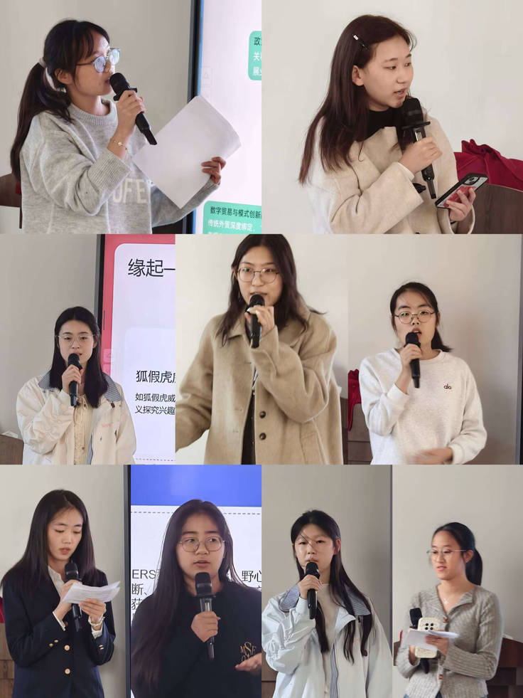 经过前期赛事报名资料初筛,共九名学生入围本次比赛的院级选拔阶段。参赛选手精神饱满,自信从容,参照英语专业特色与个人兴趣特长,聚焦跨文化传播、外贸和教育行业等职业方向,展示了丰富多彩的职业规划路径。有的参赛选手怀揣着教育初心,将“优秀的英语教师”作为职业目标,规划了自己从实习、教培到骨干教师的成长路径;有的同学则立足家乡非遗文化资源,提出以英语为桥梁,传播家乡文化的职业构想;还有同学聚焦AI技术发展趋势,将“文化向AI翻译校准师”作为未来职业目标,体现了对行业新需求的敏锐洞察力。