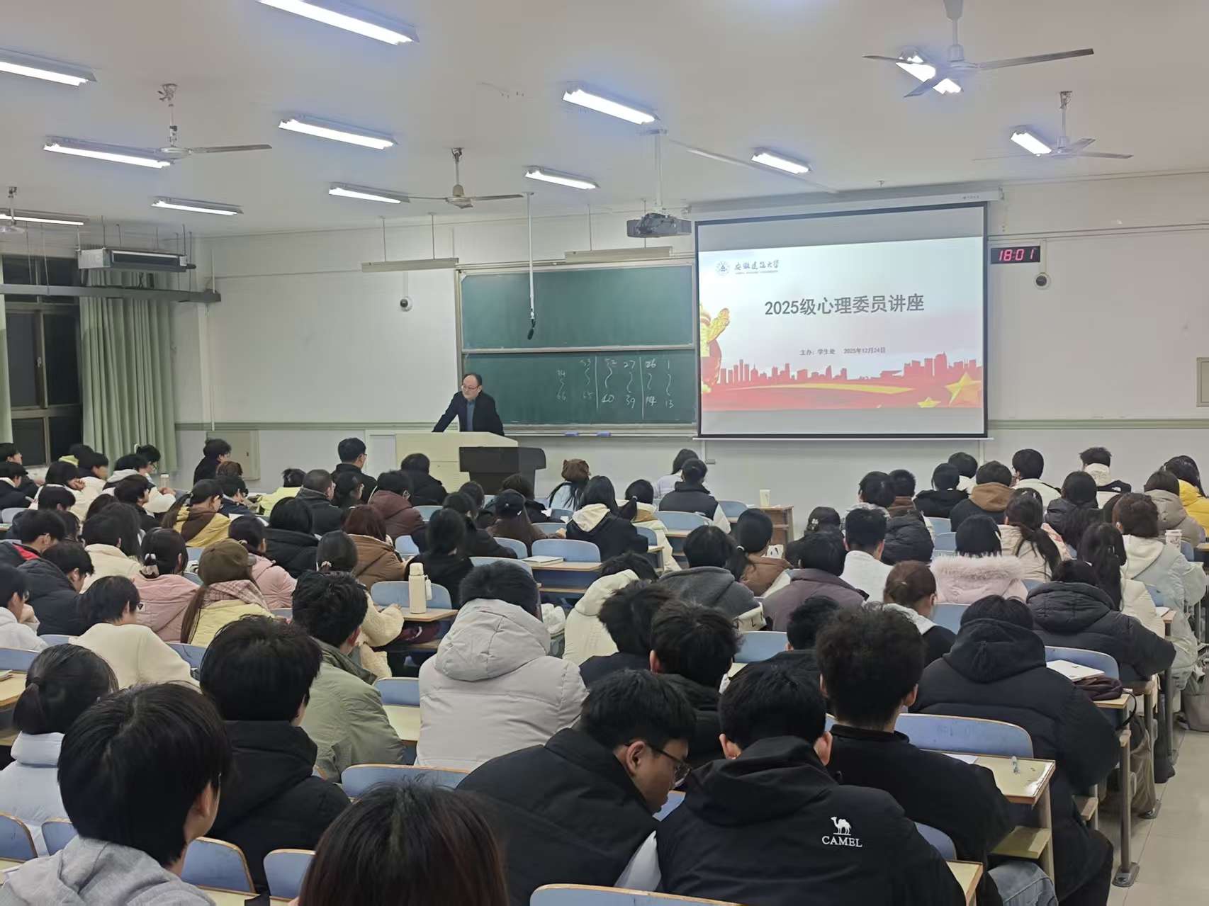 本网讯 为进一步加强学生心理健康教育工作,充分发挥心理委员在朋辈互助中的重要作用,提升心理委员工作素养与胜任力,12月24日,学校成功举办了以“微光暖心,青春同行”为主题的心理委员专题讲座。2025级全体班级心理委员参加了本次培训。