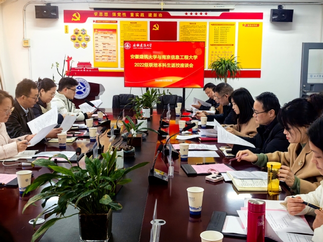 本网讯 12月26日,安徽建筑大学与南京信息工程大学首届联合培养的2022级83名本科生平安返回。南京信息工程大学金牛湖产教融合园区相关负责人,学校学生处、本科生院(创新创业学院)、后勤基建处、保卫处等相关职能部门、相关学院负责人、专业系主任和辅导员等参加了2022级联培本科生返校工作座谈会。