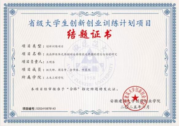 学业之余,姚天烨积极投身学科竞赛与科研实践,在探索中不断锤炼自己的本领,实现自我突破。她凭借清晰的逻辑思维与扎实的知识储备,参与第一届创思杯安徽省数学建模高校联赛,历经多轮分析推演、建模运算,最终荣获三等奖。她始终保持探索热情,先后参与两项大创项目:省级项目《液晶弹性体光热驱动自持续混沌单摆的理论与实践研究》与校级项目《徽州三雕技艺非遗的保护和传承》。此外,她还主持了一项校级大创项目《某公路隧道初期支护响应面法优化设计》,聚焦专业核心领域,攻坚克难推进研究,在科研实践中深化专业认知,提升创新能力与团队协作能力。