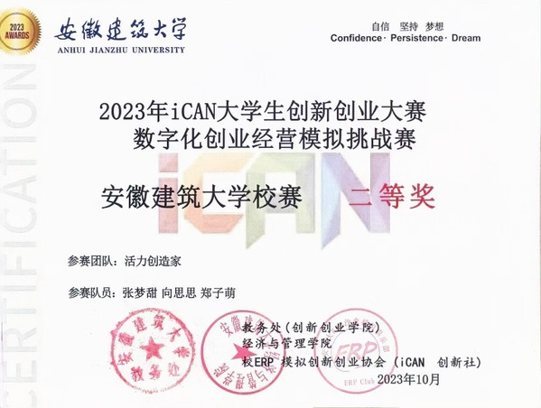 三年间,郑子萌获得ican大学生创新创业大赛模拟挑战赛校二等奖、社团CAD创新大赛三等奖、经管学院“我心中的雷锋”手抄报活动优秀奖、“最美笔记”评选活动二等奖,并通过了安徽考区VFP计算水平考试。一次次的科研攻坚与竞赛磨砺,让她深刻体会到:坚持,是突破自己瓶颈的关键,更是锻造核心竞争力的利器。