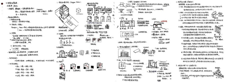 赵敬慈的专业成长是一条清晰而扎实的进阶之路。从大一时在“平面、立体与色彩”三大构成中初探形式法则,通过校园与合肥老城的认知调研将理论落于实地,再到完成最初的小型建筑设计,她一步步领略到空间设计的魅力,并对此逐步产生了浓厚的兴趣。进入大二、大三,受诸位导师的言传身教与宝贵建议启发,她在课程之外主动投入大量时间,系统研读建筑史经典、大师作品集与设计方法论专著,并以图文并茂的读书笔记方式,持续记录自己的思考与感悟。