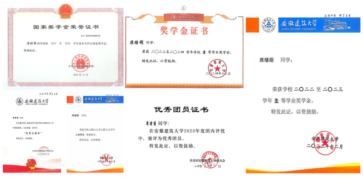 席绪萌,中共党员,建筑与规划学院2022级风景园林专业本科生,曾获国家奖学金、安徽建筑大学学业一等奖奖学金(连续三年)、校级三好学生、校级优秀共青团员等。综合成绩连续三年排名专业第一,以绩点综测双专业第一的成绩获得推免资格,现成功保研至苏州大学风景园林专业。同时,席绪萌大一一次性通过英语四级和六级,积极参加学科竞赛和科研项目,获2024全国大学生数字媒体科技作品及创意竞赛全国总决赛二等奖、2024年安徽省环境设计大赛三等奖、2024年安徽省大学生生物标本制作大赛二等奖、安徽省第九届“互联网+”大学生创新创业大赛高教主赛道铜奖、第四届“用英语讲中国故事”大学组合肥选区一等奖等,并参与国家级及省级大学生创新创业训练计划项目。