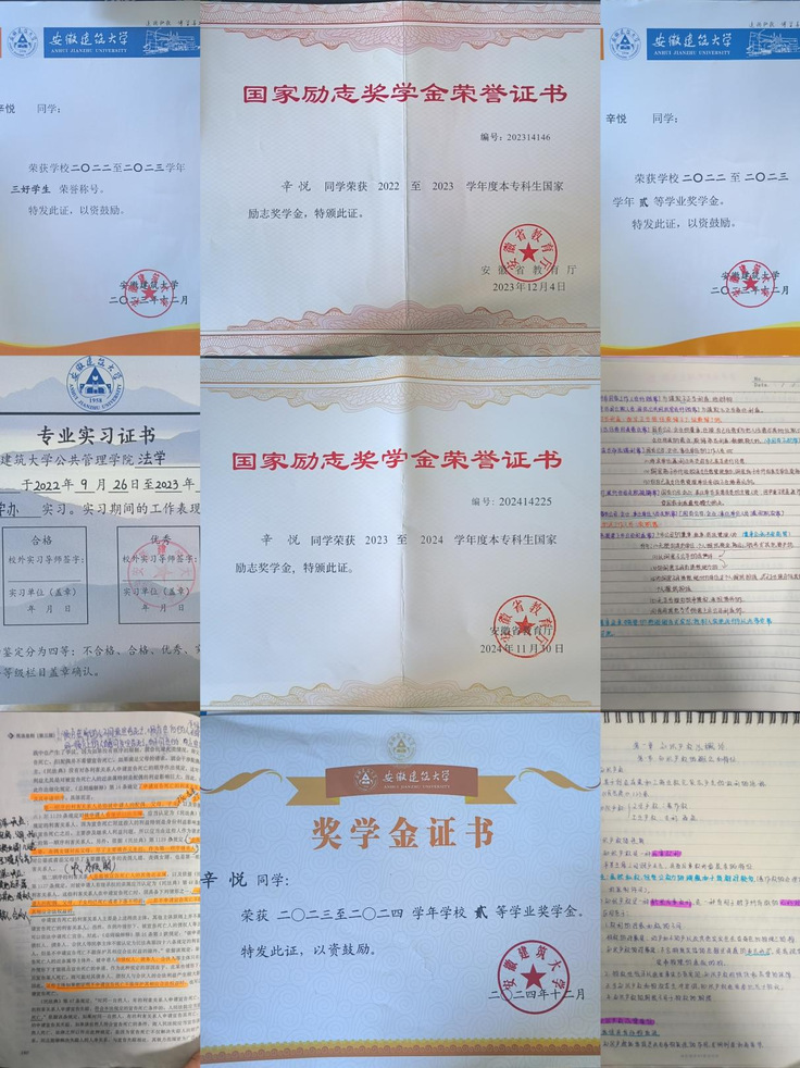 辛悦,安徽建筑大学,公共管理学院2022级法学专业本科生,曾荣获国家励志奖学金、校二等奖学金等。自大一以来,成绩一直保持优异,平均绩点3.8936,位居专业第二。现成功保研至西北大学法学专业民商法方向。