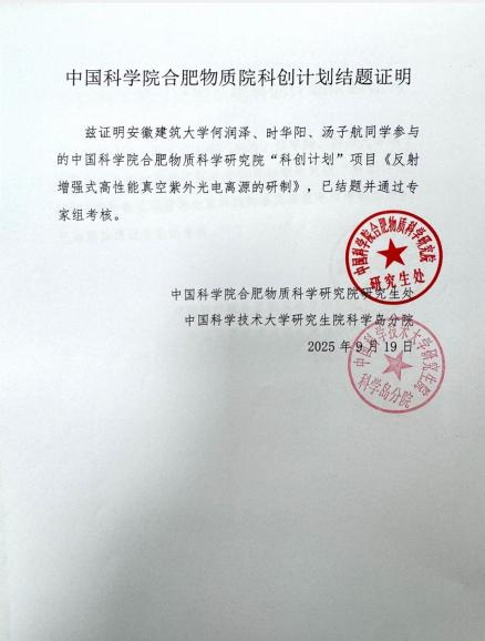 时华阳同学曾参加中国科学院合肥物质科学研究院2024年“大学生科创计划”。该项目已成功结项。