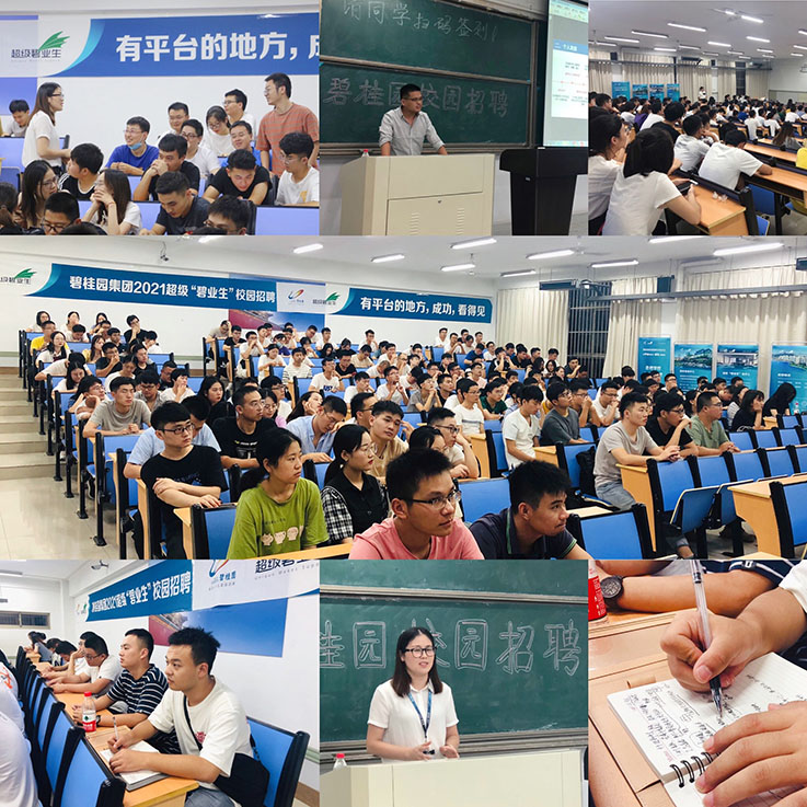 宣讲会开始,碧桂园集团HR袁立香首先播放了企业宣传片,介绍公司的具体情况。然后邀请2014年超级“碧业生”、安徽建筑大学校友——张锐,根据自己在碧桂园6年工作的亲身经历,为同学们做了主题为“挑战自己,迎接未来”的工作经验分享。不仅介绍了碧桂园集团关于人才培养、工作环境等全方面的情况,还为在座的学弟学妹们分享了工作感悟。
