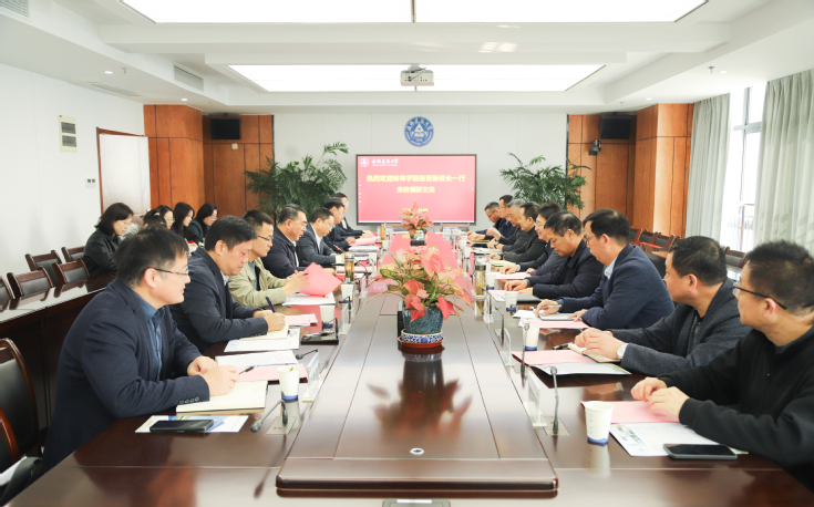 张亚新对我校的支持表示感谢,并对我校的发展成就表示赞赏。他介绍了蚌埠学院的办学历史、学科特色与发展现状,并表示此次联合培养是蚌埠学院提升办学层次、强化学科内涵建设的宝贵机遇。他相信,在我校的大力支持下,必将有效推动蚌埠学院相关学科的快速发展,助力其人才培养质量和科研创新水平实现新跨越。