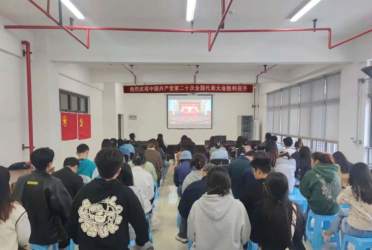 本网讯 10月16日上午,举世瞩目的中国共产党第二十次全国代表大会在人民大会堂开幕,艺术学院组织学生集体观看。