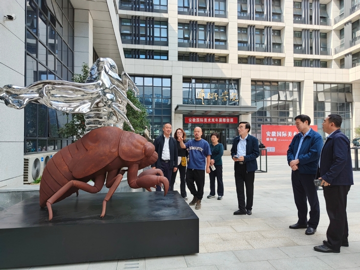 本次安徽国际美术双年展雕塑展走进安徽建筑大学,让大学生沉浸式体验雕塑之美,推动美育课堂向开放式公共文化场所延伸,拓展美育学习实践空间,打造“行走的美育课堂”。雕塑作品进行集中展示,不仅为师生们提供艺术实践舞台,更能感受和学习到雕塑专业的剧场式服务。本次展览不仅带来了视觉上的享受,也进一步启发大家对美育融入校园文化建设的思考。(作者:何文宏,袁婧卓 ;审稿:潘青)