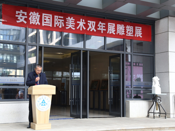 本网讯 安徽国际美术双年展雕塑展于2023年10月11日上午在安徽建筑大学艺术学院举行,本次展览集中展示了100余件国内外雕塑家的雕塑精品。本次展览由中华文化促进会公共艺术委员会、芜湖市文化和旅游局、芜湖市文学艺术界联合会、安徽省雕塑协会联合主办,安徽建筑大学艺术学院、安徽省文旅创新发展研究院等单位承办。艺术学院副院长邢瑜(主持工作)主持了开幕式。