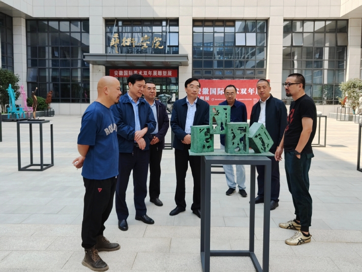 安徽建筑大学党委书记孙道胜、校长黄显怀、副校长蔡国军参观了展览。孙道胜表示,持续加强和改进新时代美育工作,将美育融入校园文化建设,带动学生在文化自信中提升审美素养、陶冶高尚情操是我们教育工作者的使命。黄显怀表示以雕塑赋能高校美育,充分发挥开放式公共场所育人功能,加强美育教学、凸显美育功能、提高学生人文素养,以美育人,意义深远。
