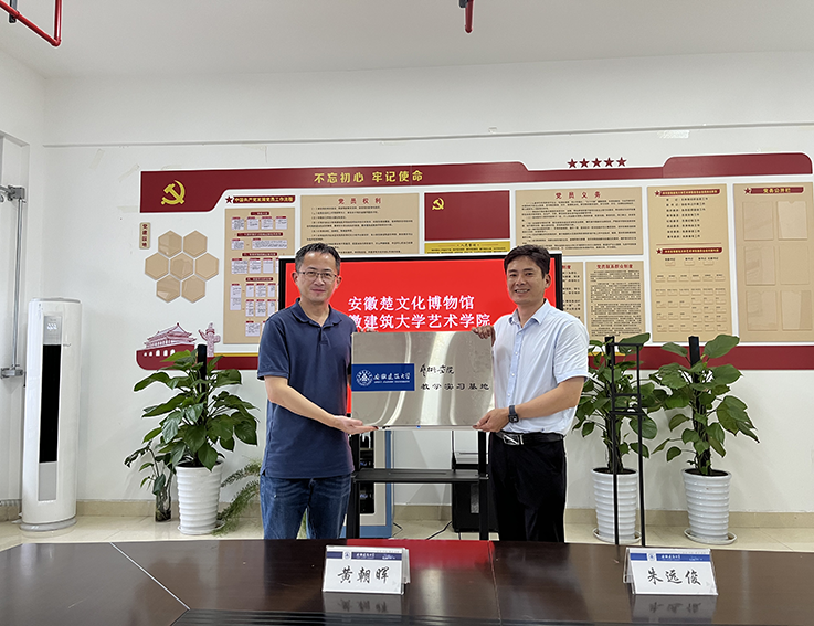 本网讯 7月11日上午,安徽楚文化博物馆副馆长朱远俊、陈列部赵晓雨、典藏研究部杨琨一行来我校调研。艺术学院副院长(主持工作)邢瑜、副院长黄朝晖、教学办主任孙强、非物质文化遗产保护传承创新团队负责人陈治军等参加了座谈。双方正式签订合作共建协议,将积极推进安徽楚文化博物馆和艺术学院在各自优势领域开展全面合作,共建实践教学基地,创新高校大学生实践教学方式,推进科研课题合作与成果转化,依托馆藏传统文化艺术精品赋能高等教育发展,服务安徽文化建设,促进楚文化历史资源活化与应用,传播中华优秀传统文化。