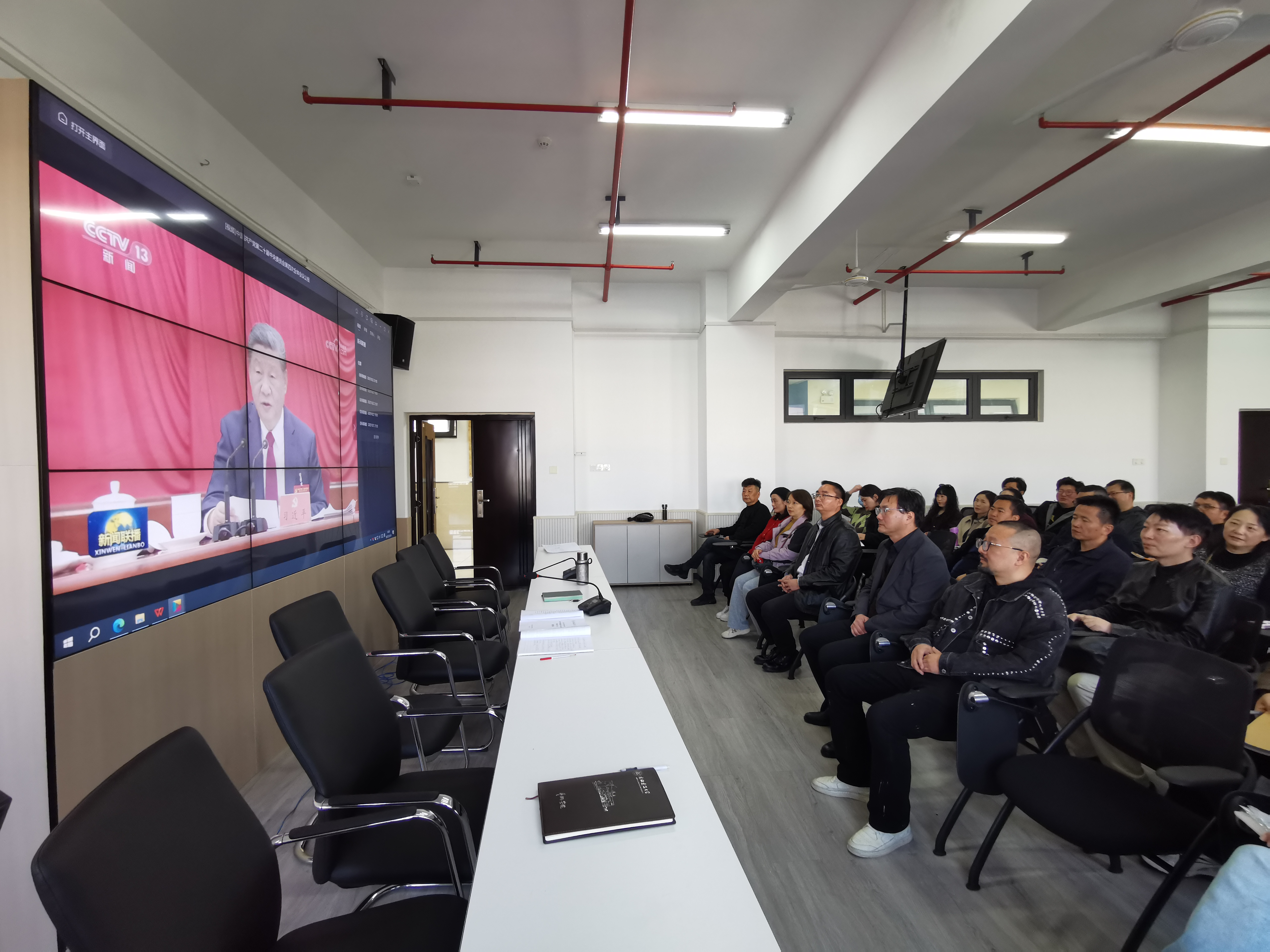 会议伊始,全体与会人员集中观看了中共中央举行的党的二十届四中全会精神新闻发布会录播。全会明确到2035年基本实现社会主义现代化远景目标。这不仅增强了大家的责任感和使命感,更坚定了艺术学院在新时代背景下培养高素质艺术人才的必胜信心。这一学习环节为后续专项行动奠定了坚实的思想基础。