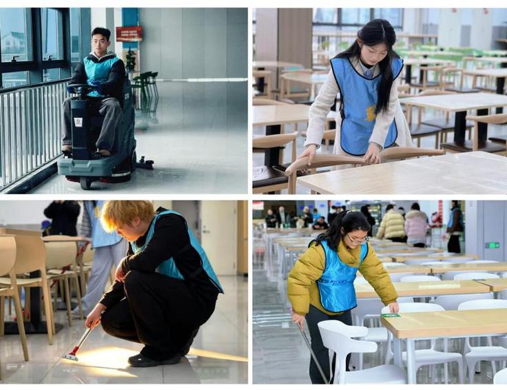 躬身实践,以劳筑美。学院团委联合后勤基建处,携手走进新南园餐厅,共同开展环境卫生清洁行动。志愿者们与工作人员并肩合作,有的仔细清洁餐桌,有的耐心整理厨具,共同维护师生的用餐空间用实际行动传递劳动之美与校园温情。雷锋同志说过,人的生命是有限的,而为人民服务是无限的。参与活动的同学表示劳动虽然辛苦,但看到整洁明亮的食堂环境,心里特别满足。作为新时代青年,我们更应在日常小事中践行奉献精神,用勤劳的双手美化校园、服务同学。