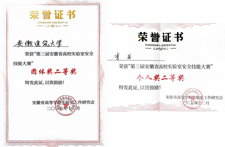 本网讯近日,安徽省高等学校实验室建设与管理研讨会暨第三届安徽省高校实验室安全技能大赛在黄山学院圆满落幕。我校教师代表队凭借扎实的专业功底、娴熟的实操技能和默契的团队协作,在全省众多高校参赛队伍中脱颖而出,成功斩获团体二等奖,参赛队员李茜老师荣获个人二等奖,充分展现了我校在实验室建设与管理领域的扎实基础和良好的专业素养。